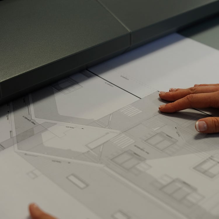 Grâce à votre imprimeur, il est aussi possible de numériser vos plans et anciens plans pour pouvoir en faire des copies, les archiver de manière numérique et éviter leur possible dégradation.