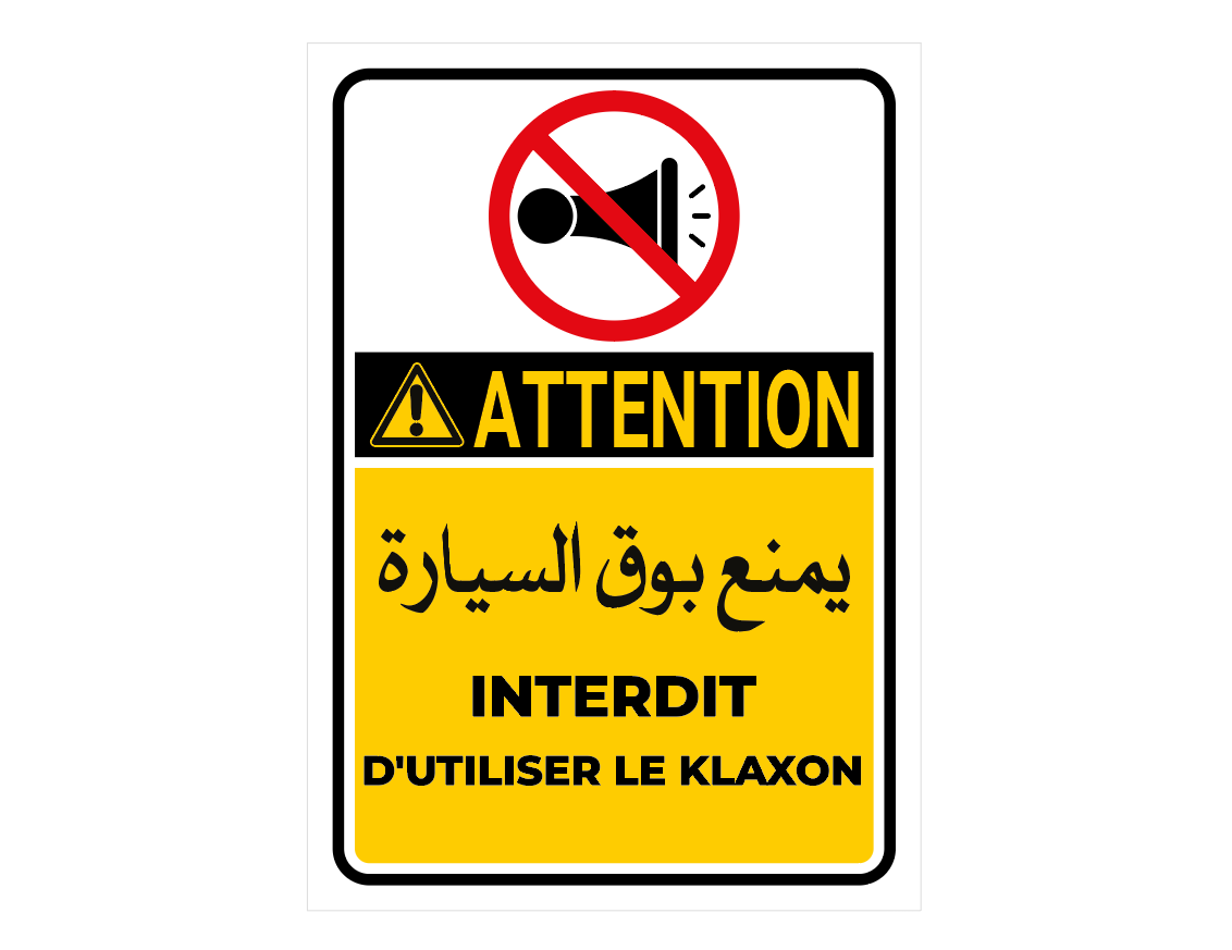 Sticker Autocollant « ممنوع استعمال بوق السيارة » – Interdiction d’utiliser le klaxon