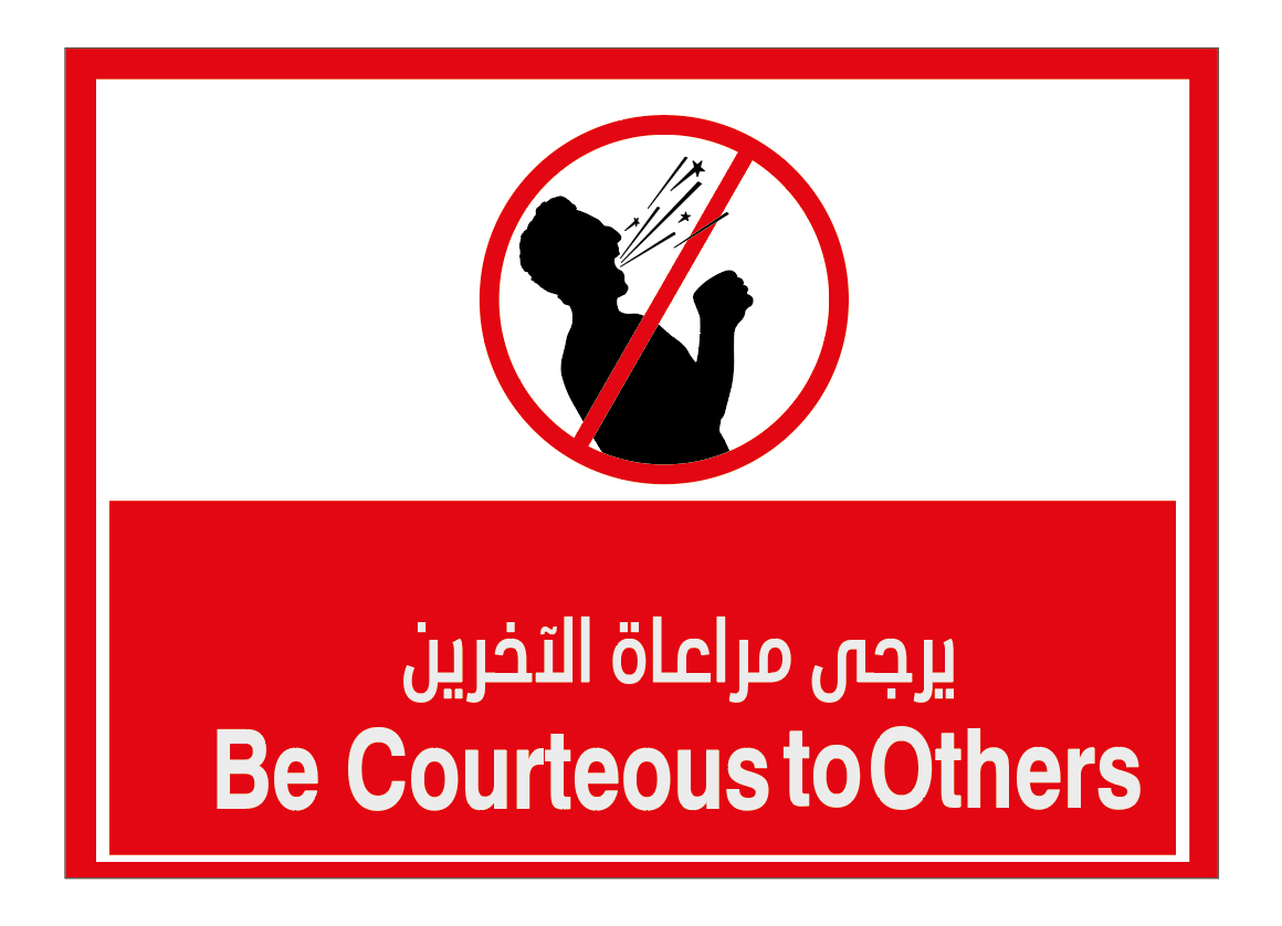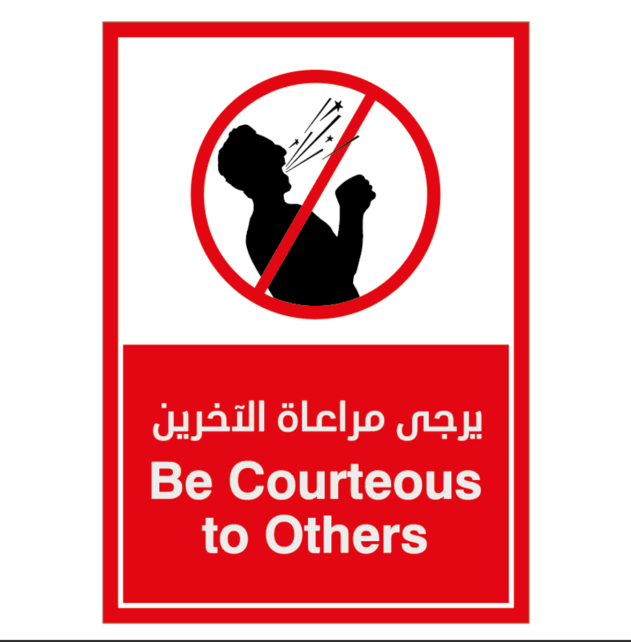 Affichez clairement votre message de respect grâce à ce sticker « يرجى مراعاة الآخرين » conçu pour sensibiliser et encourager un comportement responsable dans les espaces partagés.